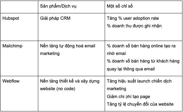 Dưới đây là một số ví dụ điểm qua về các chỉ số mà một vài brand đưa lên case studies của họ.